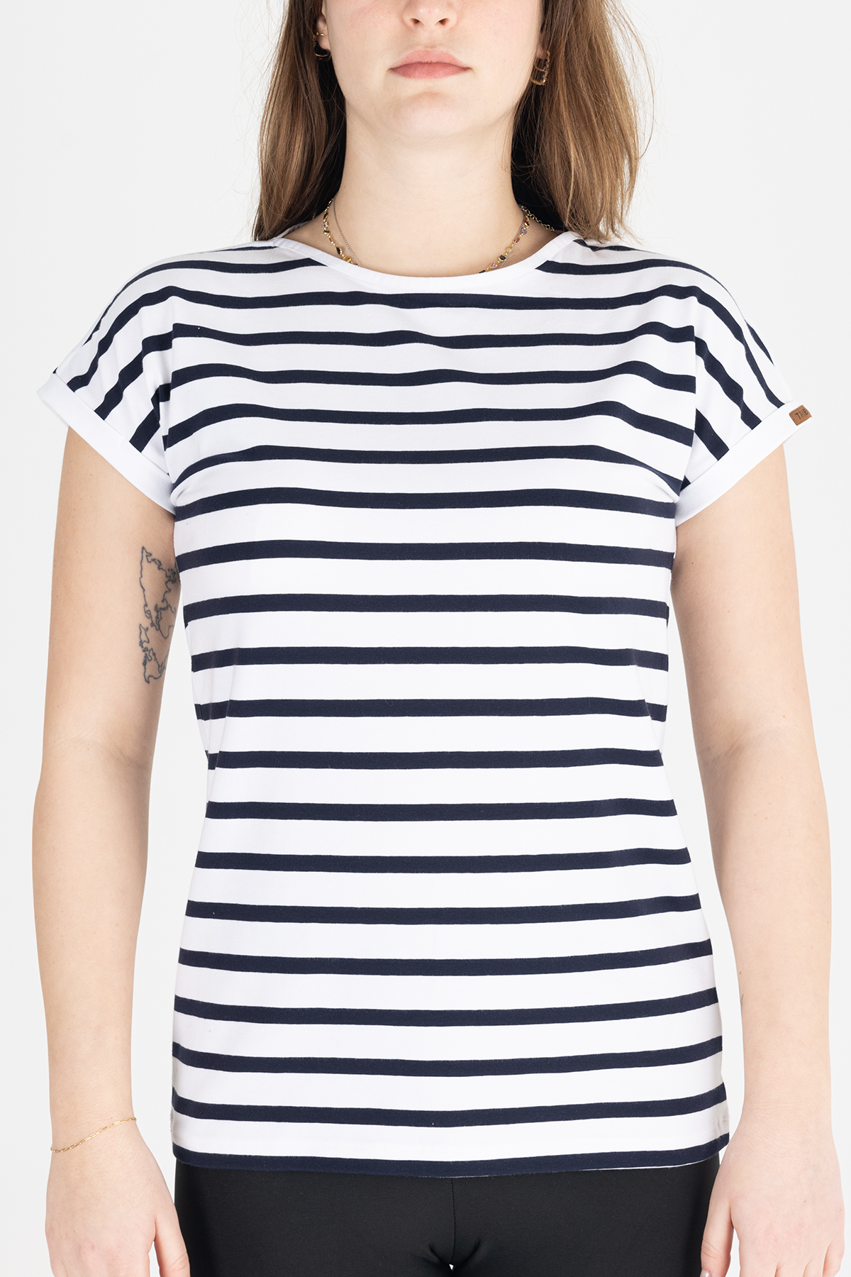 Paylen Lacivert-Beyaz Çizgili Basic T-Shirt